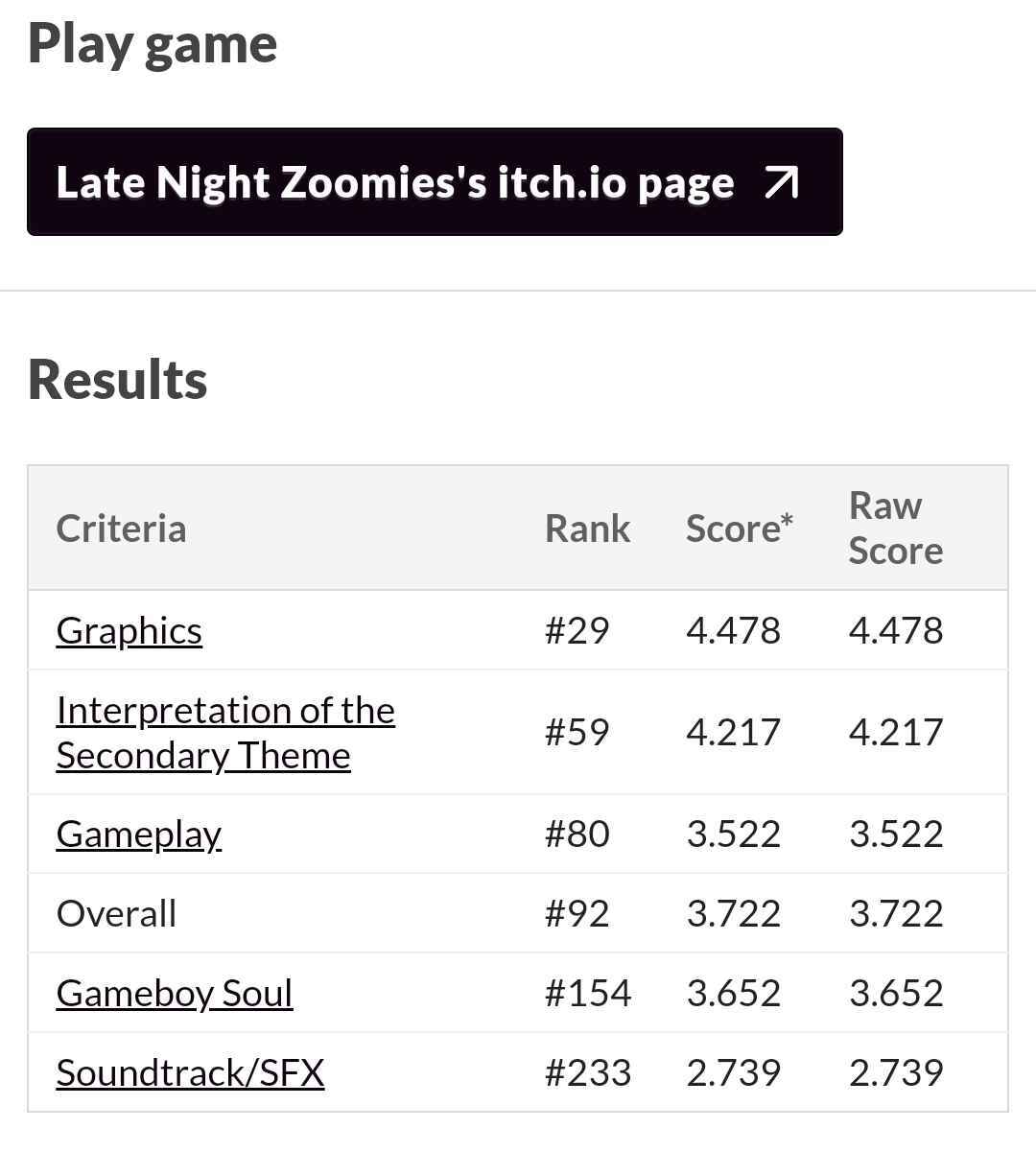 If you’d like to play our game, you can do so here (for free ofc). It’s a top down game about a cat that runs around its sleeping owner all night and chases little monsters away from them. I’m quite proud of our final score (below) for something we barely managed to finish!